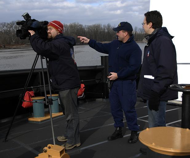 Keywords: Sturgeon Bay Media Escort DVIDS1106883.jpg en Lt Scott Rae Coast Guard Cutter Sturgeon Bay's commanding officer explains ice breaking operations to reporter Steven Ference and camera man Shawn Hillaboe from Capital 9 News in Albany during an area familiarization trip in preparation for ice operations on the Hudson River Dec 18 2008 The Sturgeon Bay homeported in Bayonne N J also conducts search and rescue pollution response and security missions in New York's waterways 2008-12-18 https //www dvidshub net/image/1106883 1106883 2013-12-12 12 43 ALBANY NY US PD-USGov Sturgeon Bay tugboat 1988 Images from DoD uploaded by Fæ |