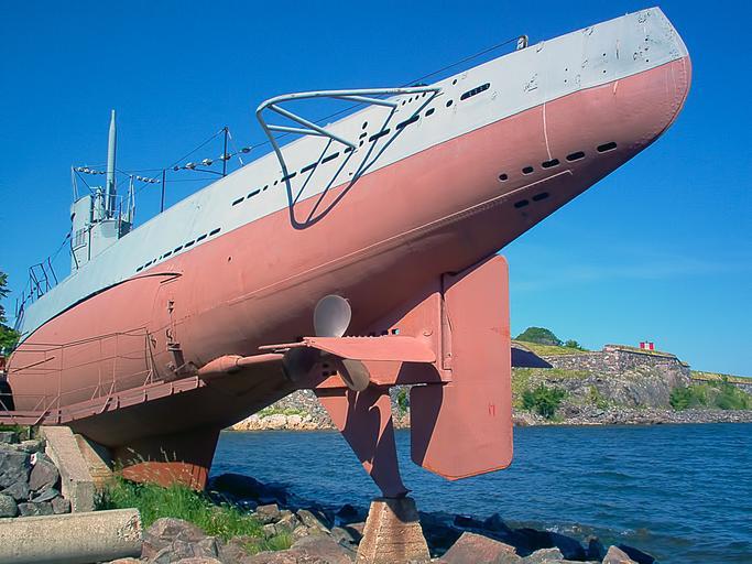Keywords: submarine tail propeller beach sea summer sky blue suomenlinna helsinki finnish