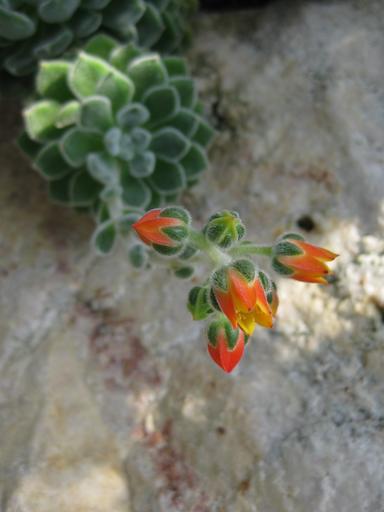 Keywords: succulent flower plant leaves reddish orange blossom bloom