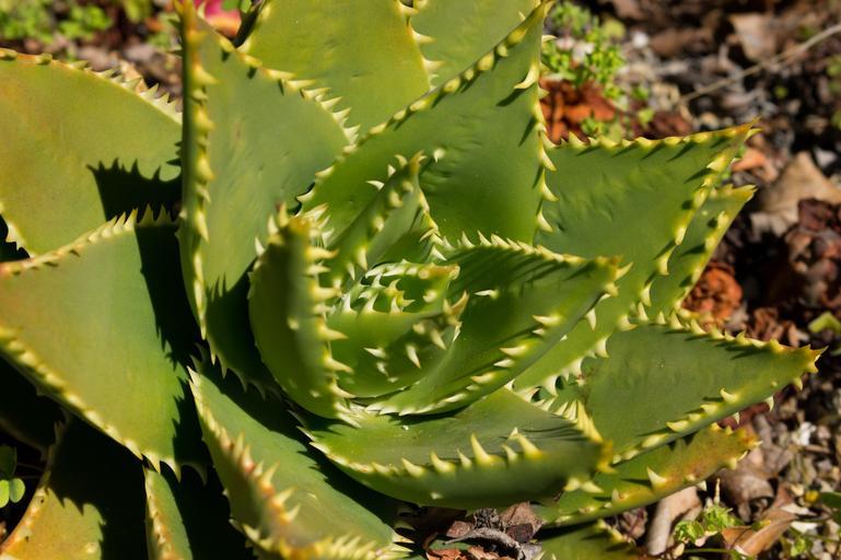 | Keywords: outdoor Triangle/teardrop shaped thick waxy leaves, with spines around the vorder of each one. CC0 waiver: To the extent possible under law, I waive all copyright and related or neighboring rights to this work. Triangle/teardrop shaped thick waxy leaves, with spines around the vorder of each one. CC0 waiver: To the extent possible under law, I waive all copyright and related or neighboring rights to this work. | ||||