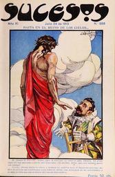 Keywords: Sucesos - caricatura por mapuche quemado en 1913.jpg es Caricatura de la Revista Sucesos de 1913 en donde Alonso de Ercilla habla con Jesús pidiendo castigo a quienes quemaron al mapuche José Manuel Painemal en Nueva Imperial http //www memoriachilena cl/602/w3-article-124264 html Wiedner 1913 PD-old PD-Chile Mapuche people Nueva Imperial Alonso de Ercilla y Zúñiga Jesus Christ 1913 in Chile 1913 cartoons