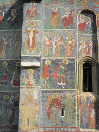| Keywords: Sucevita murals 2010 23.jpg Suceviţa Monastery Romania The church is one of the Painted churches of northern Moldavia listed in UNESCO's list of World Heritage sites own photo 14 d'Août 2010 Man vyi Own work all rights released Public domain Suceviţa murals Murals and icons on the exterior of churches Windows in Romania |
