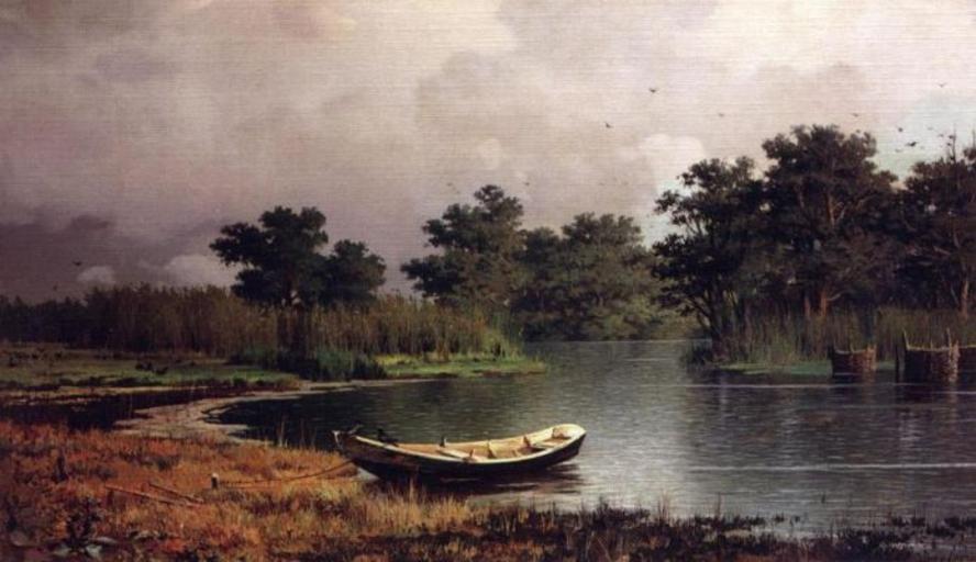 | Keywords: Sudkovsky 011.jpg Artwork Creator Rufin Sudkovsky en Riverside Boat 1881 oil on canvas cm 72 125 Plyos state museum-reservation of history architecture and art Russia Плесский госуда ственный исто ико-а хитекту ный и художественный музей-заповедник Россия object history credit line accession number http //www museum ru/C179 PD-old-100 Rufin Sudkovsky Paintings of rivers |