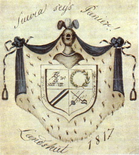 Keywords: Suevia Landshut (1817).JPG Wappen der Landsmannschaft Corps Suevia Landshut Einst und Jetzt Jahrbuch des Vereins für corpsstudentische Geschichtsforschung Bd 41 1996 S 42 1817 Corps Suevia München Corps insignia Coats of arms to be classified Corps Suevia München Coats of arms from Landshut 1817 PD-old |