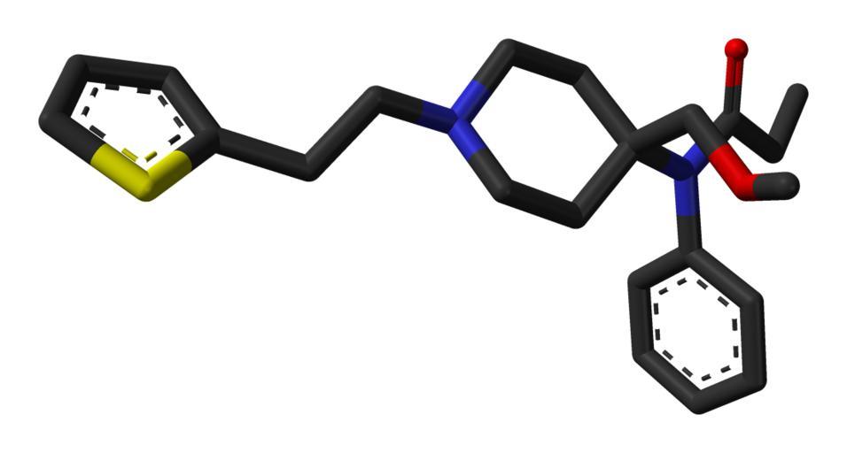 | Keywords: Sufentanil-xtal-3D-sticks-skeletal-A.png Stick model of the sufentanil molecule in the crystal structure X-ray diffraction data from cite journal N- 4- Methoxymethyl -1-2- 2-thienyl ethyl-4-piperidinyl -N-phenylpropanamide sufentanil O M Peeters N M Blaton and C J De Ranter Acta Crystallographica Section B 1979 35 4 999-1001 doi 10 1107/S0567740879005409 Own 2008-05-04 Ben Mills Benjah-bmm27 Images by Ben Mills Sufentanil | ||||