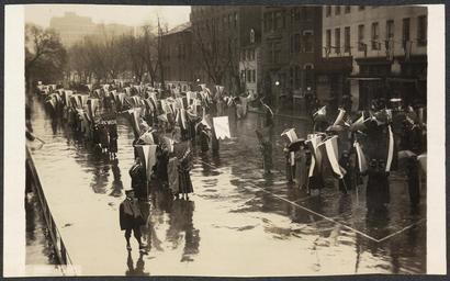 Keywords: Suffragists marching in rainy street 159043v.jpg Summary Photograph of suffragists marching with banners in city street in rain 1 photograph print 4 25 x 7 in accession number Call Number Location National Woman's Party Records Group I Container I 159 Folder Grand Picket March 4 1917 Source Collection Records of the National Woman's Party institution Library of Congress Manuscript Division http //hdl loc gov/loc mss/mnwp 159043 PD-1923 PD-Harris-Ewing suffragettes March 1917 in Washington D C Demonstrations and protests in Washington D C |