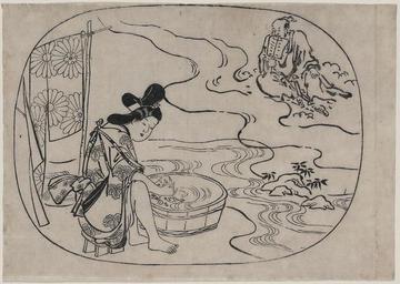 Keywords: Sugimura Jihei-Kume no sennin.jpg Kume Sennin or Kume the Immortal a recluse with the ability to travel through the air spying on a young woman washing clothes Library of Congress Prints and Photographs Division between 1685 1695 Attributed to Creator Sugimura Jihei Public domain 2D representation of 2D artwork with original having been created several hundred years ago and original creator also having died several hundred years ago LOC-image cph 3g08725 Taoism in Japan Ukiyo-e of historical figures and folk tales Laundry in art Sugimura Jihei Kume no sennin PD-old-100