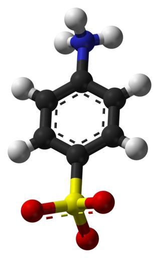 Keywords: Sulfanilic-acid-zwitterion-3D-balls-B.png Ball-and-stick model of the sulfanilic acid molecule a compound containing both sulfonic acid and amine functional groups which exists primarily as a zwitterion Derived from File Pyrocatechol-3D-balls png and File Sulfamic-acid-zwitterion-3D-balls png 2010-07-27 Jynto and Ben Mills Sulfanilic acid Images by Jynto |