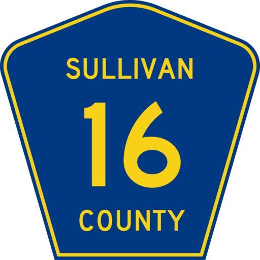 | Keywords: Sullivan County 16.svg 450 mm by 450 mm 18 in by 18 in county shield made to the specifications of the 2004 edition of Standard Highway Signs sign M1-6 Uses the Roadgeek 2005 fonts United States law does not permit the copyrighting of typeface designs and the fonts are meant to be copies of a U S Government-produced work anyway Own 2009-06-27 Carpetmaster101 Own work all rights released Public domain Diagrams of county route markers with county name 0016 16 number | ||||