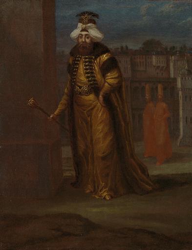 Keywords: Sultan Mahmud I Rijksmuseum SK-A-2014.jpeg accession number SK-A-2014 Jean Baptiste Vanmour credit line nl De sultan is geportretteerd in de open lucht vergezeld door twee dienaren Op de achtergrond zien we enkele gebouwen Mogelijk moet dit het haremgedeelte van het paleis van de sultan het Topkapı Sarayı voorstellen Ahmed III draagt een met bont gevoerde kaftan en een tulband die kâtibî wordt genoemd Dit type tulband was gedrapeerd rondom een plat hoofddeksel en versierd met een waaiervormig sieraad Ook de ceintuur van de sultan is rijk bezet met juwelen evenals de ceremoniële staf die hij in zijn rechterhand vasthoudt Staande ten voeten uit scepter in de rechterhand Op de achtergrond twee volgelingen voor het paleis Collection schilderijen; Vanmour serie ; Jean Baptiste Vanmour 1671-1737 olieverf op doek ca 1730-1737 doek Height cm 33 5 doek Width cm 26 5 exhibition history 2009-2010 Jean Baptiste Vanmour Peintre de la Sublime Porte 1671-1737 Valenciennes 2006-2007 Die Türken kommen Exotik und Erotik Mozart in Koblenz und die Orient-Sehnsucht in der Kunst Koblenz 2003-2004 An eyewitness of the Tulip Era Jean-Baptiste Vanmour Istanbul 2003-2003 De Ambassadeur de Sultan and de Kunstenaar op audiëntie in Istanbul Amsterdam Institution Rijksmuseum Technique oil canvas object history Acquisition 1902 object type Potential derivatives exist check http //commons wikimedia org/w/index php search Rijksmuseum+SK-A-2014 this search PD-US PD-old Data and photography rights All data and all images made available through the API are either in the public domain or are subject to a CC0 license https //www rijksmuseum nl/en/api/terms-and-conditions-of-use cc-zero place of creation http //www rijksmuseum nl/collectie/SK-A-2014 Sultan Mahmud I Q17326828 Uploaded with GWToolset Sultan Mahmud I Rijksmuseum SK-A-2014 http //www rijksmuseum nl/media/assets/SK-A-2014 Images uploaded by Fæ Images from the Rijksmuseum Paintings in the Rijksmuseum Amsterdam |