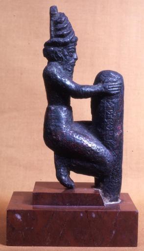 Keywords: Sumerian - Deity Holding a Foundation Peg - Walters 54790 - Profile.jpg A deity wearing a divine horned headdress kneels with a foundation peg inscribed with King Gudea's name Though the inscription is mostly defaced it was probably dedicated to the Ningirsu god of the city of Lagash ca 2100 BC Neo-Sumerian cast bronze cm 17 7 4 3 7 2 accession number 54 790 7006 Joseph Brummer New York Henry Walters city Baltimore Walters Art Museum Henry Walters Acquired by Henry Walters 1923 Inscription includes name of King Gudea place of origin France Walters Art Museum license Ancient Near East art in the Walters Art Museum Art of Sumer Media contributed by the Walters Art Museum needs category review |