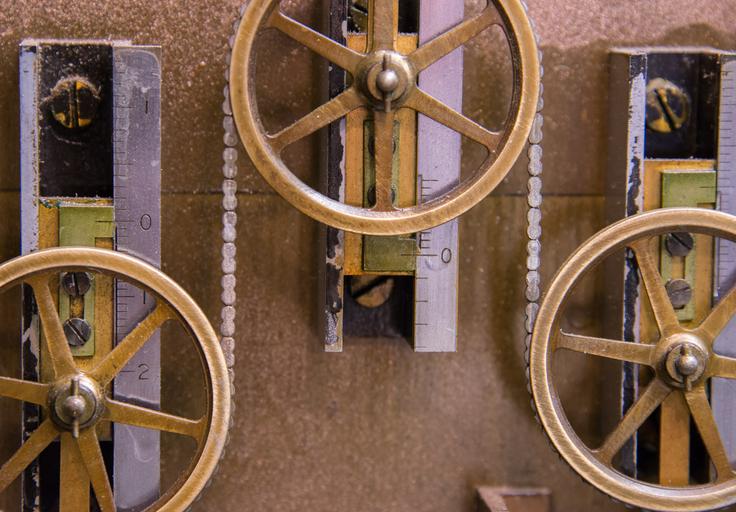 | Keywords: 1910 2016 administration atmospheric co-ops coops center center for operational oceanographic products and services centerforoperationaloceanographicproductsandservices coast md maryland noaa national oceanic and atmospheric administration nationaloceanicandatmosphericadministration oceanic oceanographic operational products services silver silver spring silverspring spring states tide predicting machine tidepredictingmachine u.s. us u.s. coast and geodetic survey uscoastandgeodeticsurvey united united states unitedstates analog analog computer analogcomputer antique brains brass chain computer geodetic high high tide hightide historic history low low tide lowtide machine mechanical metal national ocean old old brass brains oldbrassbrains pulley summation summation chain summationchain survey tide tide predicting machine no. 2 tidepredictingmachineno2 wheel bike vehicle tire rim indoor A part of the summation chain of Tide Predicting Machine No. 2, a special purpose mechanical analog computer for predicting the height and time of high and low tides. By wrapping above and below a series of pulleys, the chain sums their deflections, which is a key component of computing tides. The U.S. government used Tide Predicting Machine No. 2 from 1910 to 1965 to predict tides for ports around the world. The machine, also known as “Old Brass Brains,” uses an intricate arrangement of gears, pulleys, chains, slides, and other mechanical components to perform the computations. A person using the machine would require 2-3 days to compute a year’s tides at one location. A person performing the same calculations by hand would require hundreds of days to perform the work. The machine is 10.8 feet (3.3 m) long, 6.2 feet (1.9 m) high, and 2.0 feet (0.61 m) wide and weighs approximately 2,500 pounds (1134 kg). The operator powers the machine with a hand crank. A part of the summation chain of Tide Predicting Machine No. 2, a special purpose mechanical analog computer for predicting the height and time of high and low tides. By wrapping above and below a series of pulleys, the chain sums their deflections, which is a key component of computing tides. The U.S. government used Tide Predicting Machine No. 2 from 1910 to 1965 to predict tides for ports around the world. The machine, also known as “Old Brass Brains,” uses an intricate arrangement of gears, pulleys, chains, slides, and other mechanical components to perform the computations. A person using the machine would require 2-3 days to compute a year’s tides at one location. A person performing the same calculations by hand would require hundreds of days to perform the work. The machine is 10.8 feet (3.3 m) long, 6.2 feet (1.9 m) high, and 2.0 feet (0.61 m) wide and weighs approximately 2,500 pounds (1134 kg). The operator powers the machine with a hand crank. |