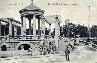 | Keywords: Summer Commercial Club (Rostov-on-Don) 4.jpg ru Ротонда в саду павильон Летнего Комме ческого клуба в Ростове-на-Дону 1913 http //rostov-don livejournal com/2685067 html author PD-Rus-Empire Uploaded with UploadWizard Bolshaya Sadovaya street in Rostov-on-Don |