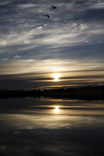 Keywords: summer finnish swan lake sunset sun calm summer