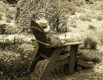Keywords: summer hamburg hat relaxation planned un blomen park rest recovery beautiful man chair sun flowers nature relax silent