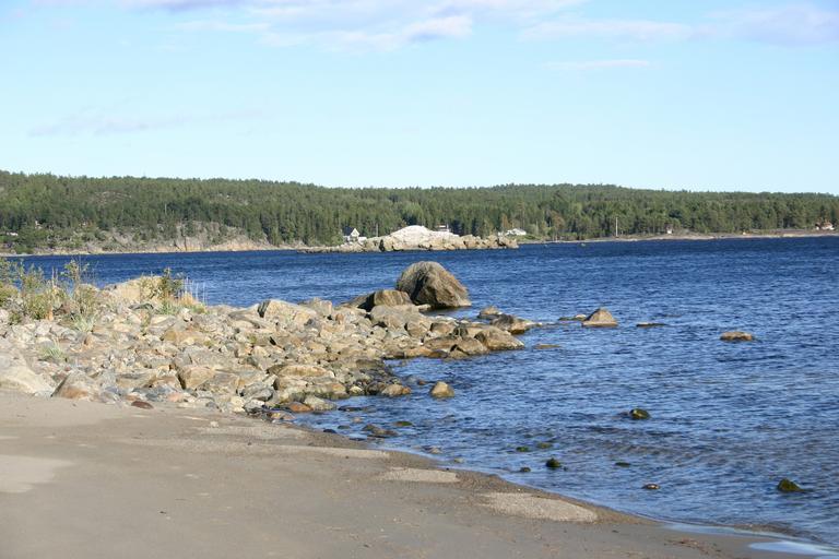 Keywords: summer nature beach north of sweden sweden water ocean rocks pebble shoreline seaside
