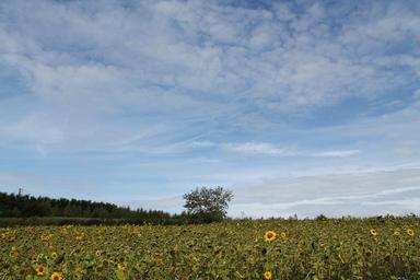Keywords: summer tree clouds landscape sky nature green field rural sun sunflower blue sunshine land france holiday hell heat in the free