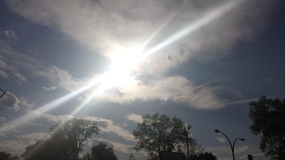 Keywords: sun burst light sky clouds cloud blue white tree trees spring