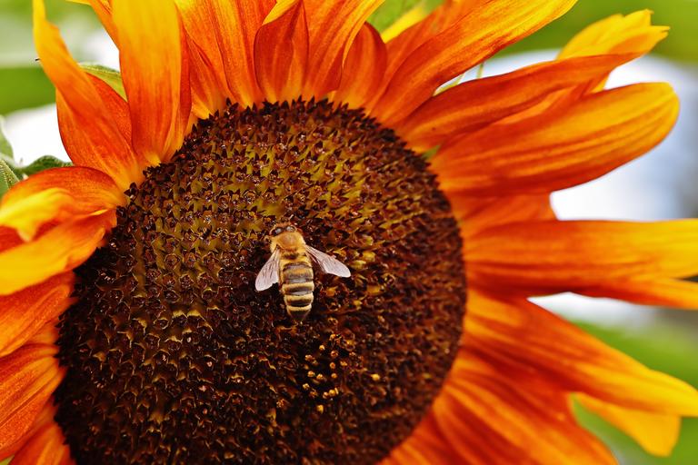 Keywords: sun flower bees summer garden blossom bloom yellow insect helianthus nature pollination close pollen macro sunny sun plant helianthus annuus flower seeds