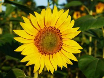 Keywords: sun flower blossom bloom field summer morning morgenstimmung yellow green flower plant nature garden meadow bloom hell friendly of course rural agriculture in the free grows petals flowering time bright light rays