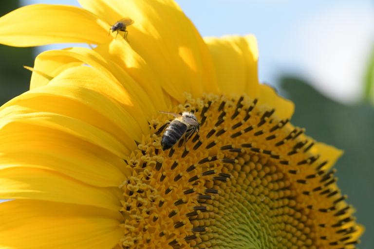 Keywords: sun flower flower blossom bloom yellow nature summer macro beautiful plant bee close garden