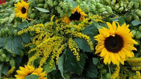 Keywords: sun flower hops autumn climber hops fruits hopfendolde autumn mood plant decoration botany nature yellow green
