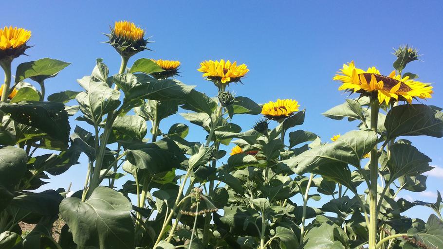 Keywords: sun flower sunflower field sky flowers summer sunlight large flowers sea of flowers blossom bloom yellow plant flora field