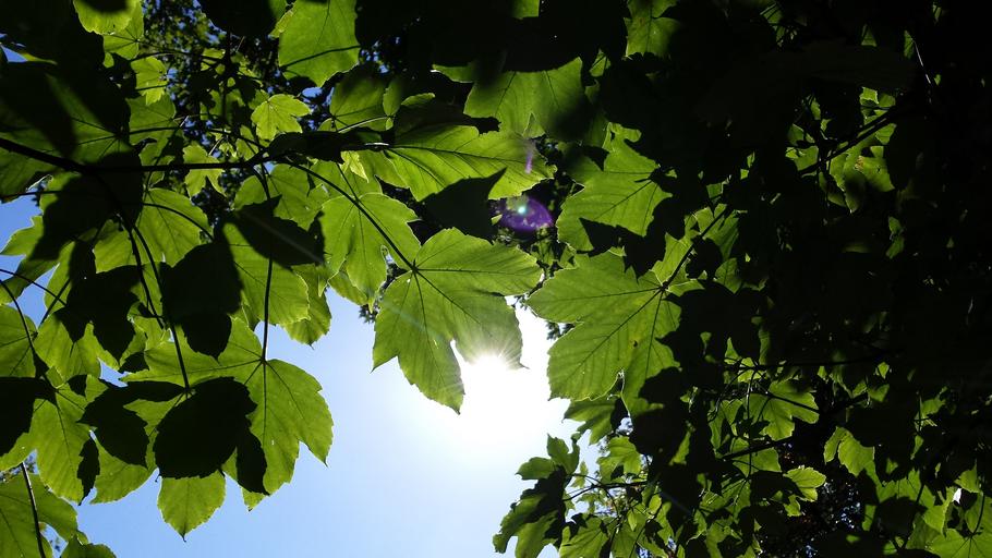 Keywords: sun flurry maple blue sky autumn leaves color tree green nature farbenpracht