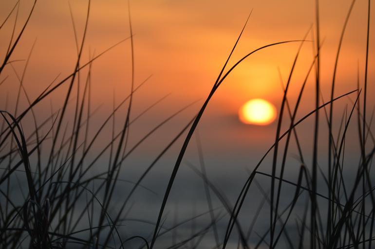 Keywords: sun setting abendstimmung mood sunset evening dusk landscape rest atmosphere beautiful evening sky twilight orange grasses romance water