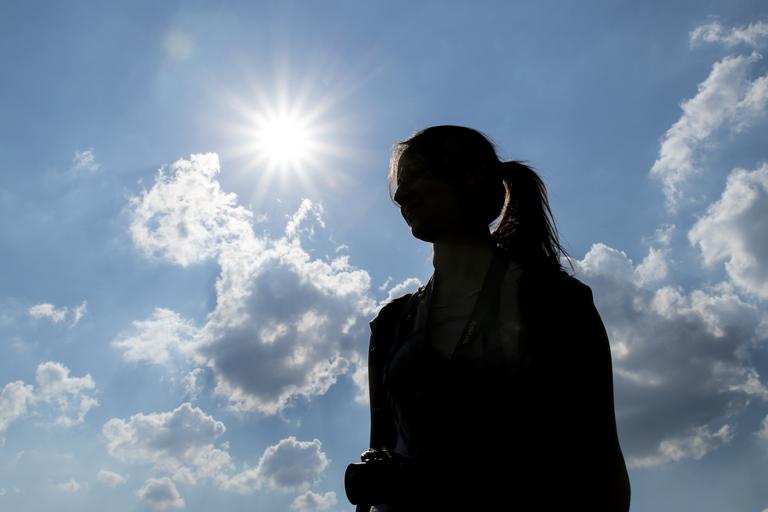 Keywords: sun sky clouds rays light summer blue silhouette woman contrast