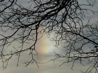 Keywords: sun sundog parhelia haloerscheinung iridescent weather phenomenon clouds iridescent cloud tree aesthetic branches