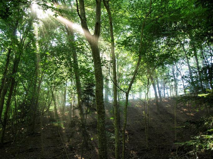 Keywords: sunbeam forest trees mood back light sun nature leaves