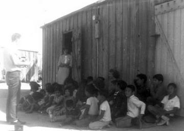 Keywords: arizona mennoniteboardofmissions sunday school sundayschool arlen godshall arlengodshall blackandwhite monochrome black and white Caption: Arlen Godshall, a Mennonite volunteer, leads a Sunday afternoon children's Sunday School group in Stanfield, Arizona. 1963. Citation: Mennonite Board of Missions Photograph Collection. Mission to Arizona, 1950-1970. IV-10-7.2 Box 1 Folder 54 , photo #15. Mennonite Church USA Archives - Goshen. Goshen, Indiana. Caption: Arlen Godshall, a Mennonite volunteer, leads a Sunday afternoon children's Sunday School group in Stanfield, Arizona. 1963. Citation: Mennonite Board of Missions Photograph Collection. Mission to Arizona, 1950-1970. IV-10-7.2 Box 1 Folder 54 , photo #15. Mennonite Church USA Archives - Goshen. Goshen, Indiana.