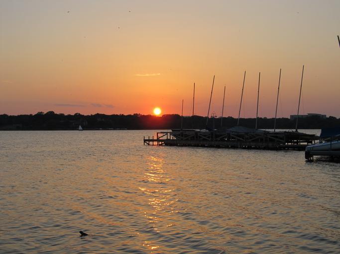 Keywords: sundown lake water dusk boats dock sunset peaceful serene panorama vibrant orange evening sky beautiful sun twilight dallas texas white rock lake
