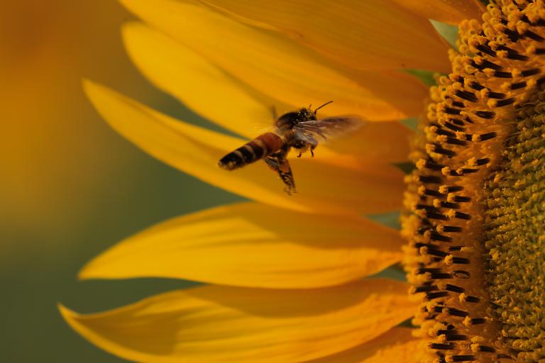 Keywords: sunflower bee honeybee flower agriculture nature color yellow colorful flora outdoors farming golden