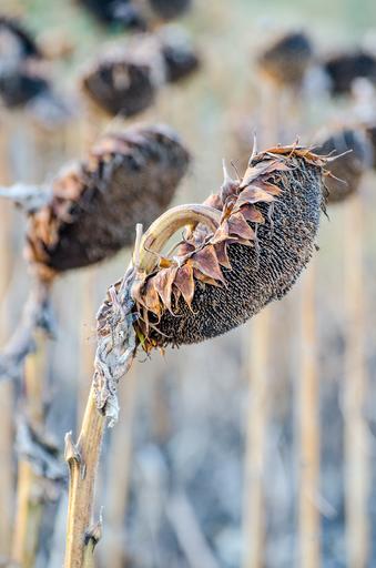 Keywords: sunflowers fall harvest season browned crinkle neutral colors autumn nature harvest foliage flower flora leaves summer sunlight rural bloom sunflower ripe