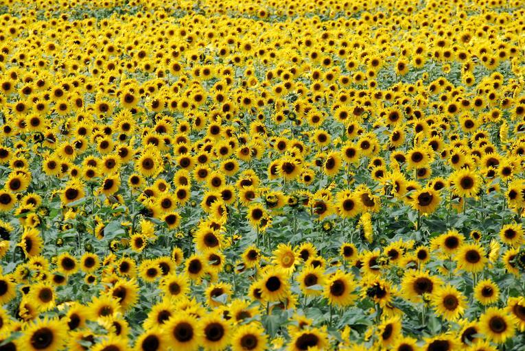 Keywords: sunflowers flowers field yellow summer agriculture crop vibrant