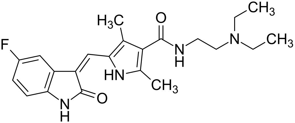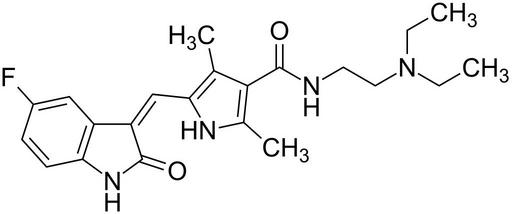 Keywords: Sunitinib 200.svg validSVG Structure of Z -N- 2- diethylamino ethyl -5- 5-fluoro-2-oxoindolin-3-ylidene methyl -2 4-dimethyl-1H-pyrrole-3-carboxamide Own 2014-03-20 Emeldir <span class signature-talk >talk</span> Chemical structure verified https //upload wikimedia org/wikipedia/commons/b/b5/Sunitinib_200 svg 1S/C22H27FN4O2/c1-5-27 6-2 10-9-24-22 29 20-13 3 19 25-14 20 4 12-17-16-11-15 23 7-8-18 16 26-21 17 28/h7-8 11-12 25H 5-6 9-10H2 1-4H3 H 24 29 H 26 28 /b17-12- WINHZLLDWRZWRT-ATVHPVEESA-N 557795-19-4 PD-chem Sunitinib |