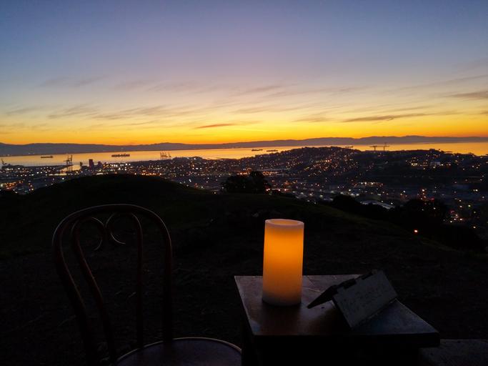 Keywords: sunrise bay water blue scenic san francisco bay table for two not reserved