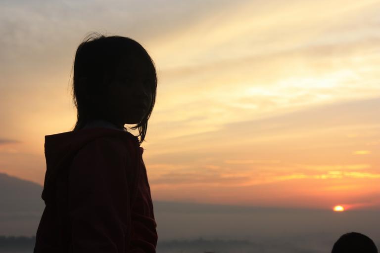 Keywords: sunrise child silhouette sun yellow nature orange morning outdoor dawn