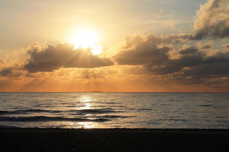 Keywords: sunrise dawn ocean wave clouds sunlight morning sea tranquil serene mood