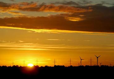 Keywords: sunrise east frisia windräder high voltage clouds morning light golden mood sky morgenstimmung atmospheric sun golden sky skies power line collector wind power plants light morning landscape sunlight wind energy