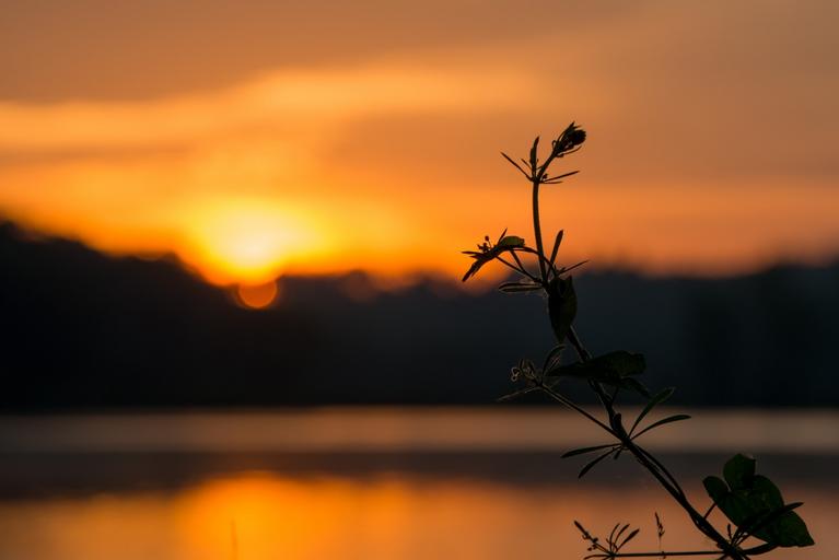 Keywords: sunrise orange clouds sky night morning spring emotions outline silhouette blurred background bokeh