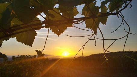 Keywords: sunrise sun morning vineyard leaf wake up
