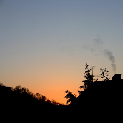 Keywords: sunset afterglow home fireplace chimney smoke heat evening sky bill mood sky sun atmosphere orange