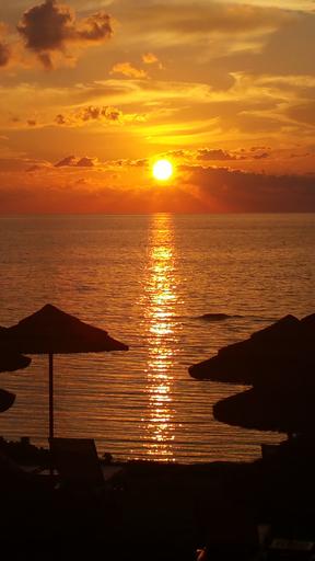 Keywords: sunset beach afterglow sea water silhouette mediterranean ocean abendstimmung evening sky romantic twilight red sun lighting sonnenunetrgang evening nature landscape