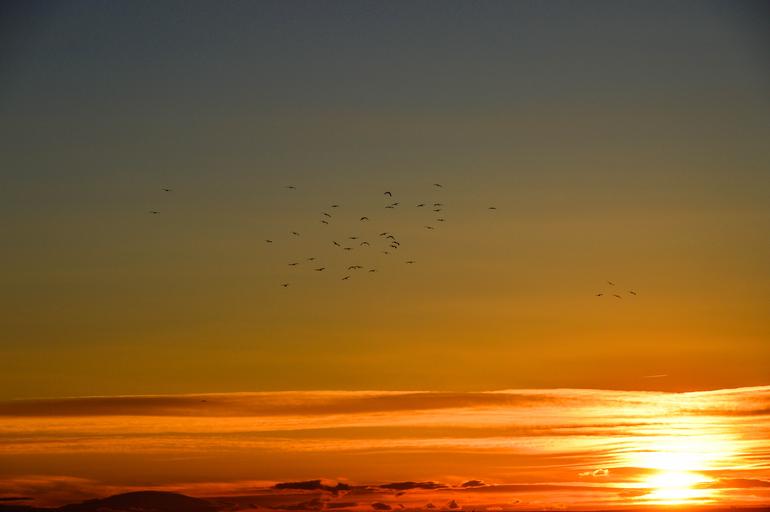 Keywords: sunset birds in orizonte flashes