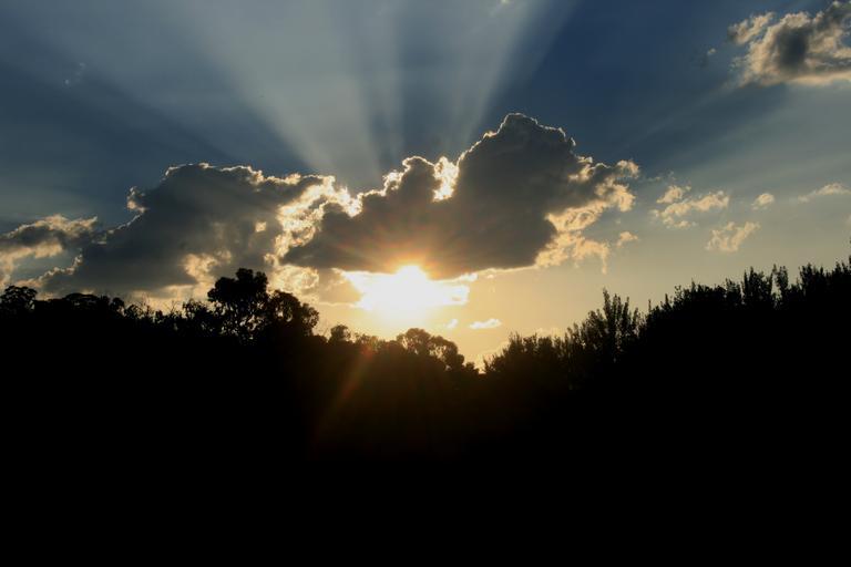 Keywords: sunset bright shiny stunning light sun rays of sunshine sky dramatic trees spreading light rays