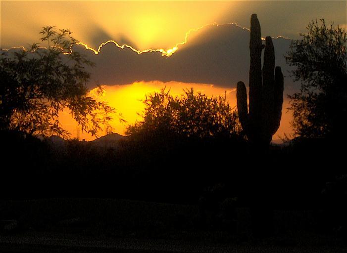 Keywords: Sunset and cactus.JPG Taken by me Scottsdale Arizona 2006-07-09 own assumed Dominic Carnegiea gigantea Yellow sunsets Sunsets of Arizona Unidentified locations in the United States