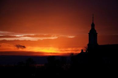 Keywords: sunset church sun colors autumn nature building trees
